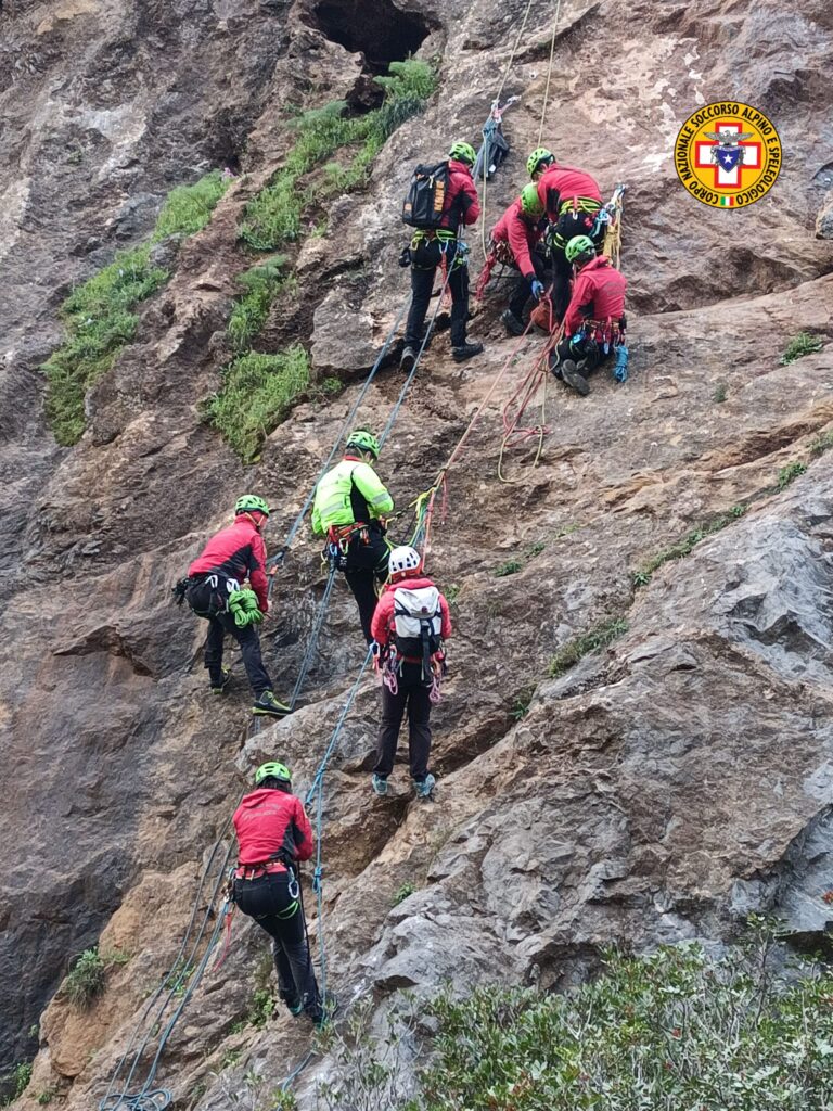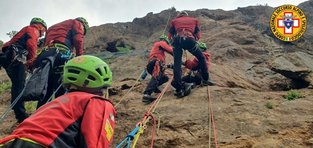 Dopo averla raggiunta, i tecnici la hanno calata in sicurezza fino a terra. Contestualmente al recupero i tecnici si sono esercitati su varie manovre: calata di più tecnici contemporaneamente, superamento del nodo di giunzione tra due corde, manovre da mettere in atto in caso di corde bloccate. Tutte operazioni basilari per il recupero di infortunati in parete o in contesti particolarmente impervi come quello scelto per questa esercitazione.