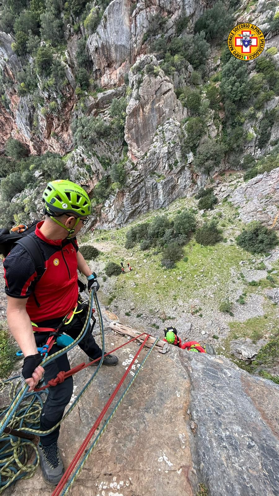 Dopo averla raggiunta, i tecnici la hanno calata in sicurezza fino a terra. Contestualmente al recupero i tecnici si sono esercitati su varie manovre: calata di più tecnici contemporaneamente, superamento del nodo di giunzione tra due corde, manovre da mettere in atto in caso di corde bloccate. Tutte operazioni basilari per il recupero di infortunati in parete o in contesti particolarmente impervi come quello scelto per questa esercitazione.