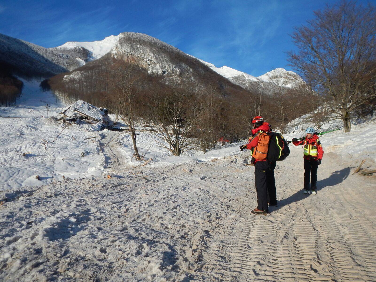 Dal 25 gennaio due Tecnici di Elisoccorso (TE) e quattro Tecnici di Soccorso Alpino (TeSA), rappresentanti le Stazioni di Cagliari, Sassari e Nuoro della XXIX Delegazione Alpina, personale specializzato nella movimentazione su terreno innevato, ricerca in valanga e ricerca in macerie, con in dotazione tutte le attrezzature alpinistiche specifiche per tali emergenze, hanno iniziato ad operare secondo le indicazioni del Centro di Coordinamento di Penne e della DiComaC di Rieti.